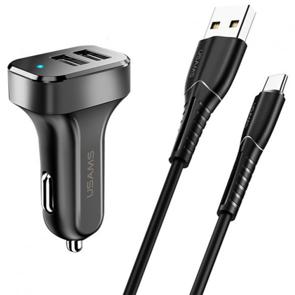 Автомобильное зарядное устройство Usams-NT U35 Type-C Charging Cable 1M Black +C13 2.1A Dual USB Автомобильное зарядное устройство Usams-NT U35 Type-C Charging Cable 1M Black +C13 2.1A Dual USB