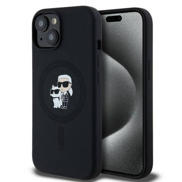 Чехол Karl Lagerfeld Silicone Karl & Choupette Ring для iPhone 15|14|13 Black with MagSafe (KLHMP15SSCMKCRHK)
