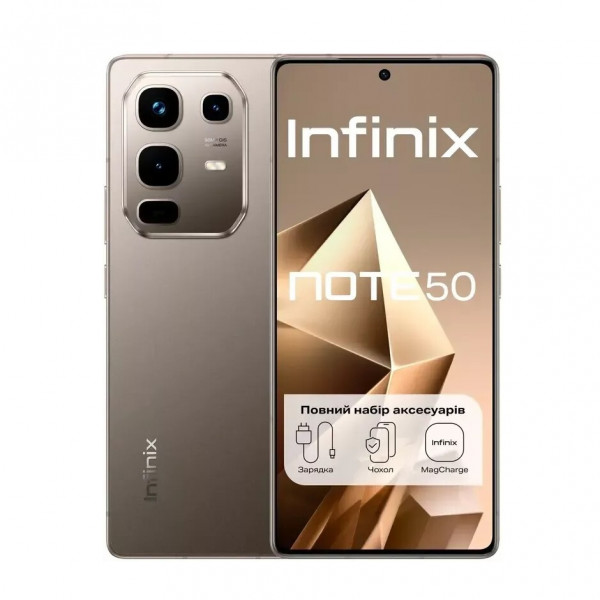 Відкрийте для себе Infinix NOTE 50 – смартфон, створений для тих, хто хоче більшого. Яскравий 6,78-дюймовий дисплей із частотою 144 Гц дарує неймовірно плавну картинку та комфорт у будь-якому сценарії – від перегляду фільмів до ігор. Основна камера на 50 МП з оптичною стабілізацією дозволяє робити чіткі та насичені знімки навіть у русі, а вбудований ШІ допомагає вам використовувати можливості телефону на максимум. Потужний процесор MediaTek Helio G100 Ultimate гарантує швидку та стабільну роботу, а акумулятор на 5200 мАг з підтримкою як швидкої зарядки 45 Вт, так і бездротової MagCharge 30 Вт дозволяє залишатися на зв'язку цілий день. Додайте до цього міцну металеву рамку ArmorAlloy, і ви отримаєте смартфон, готовий до будь-яких повсякденних викликів.